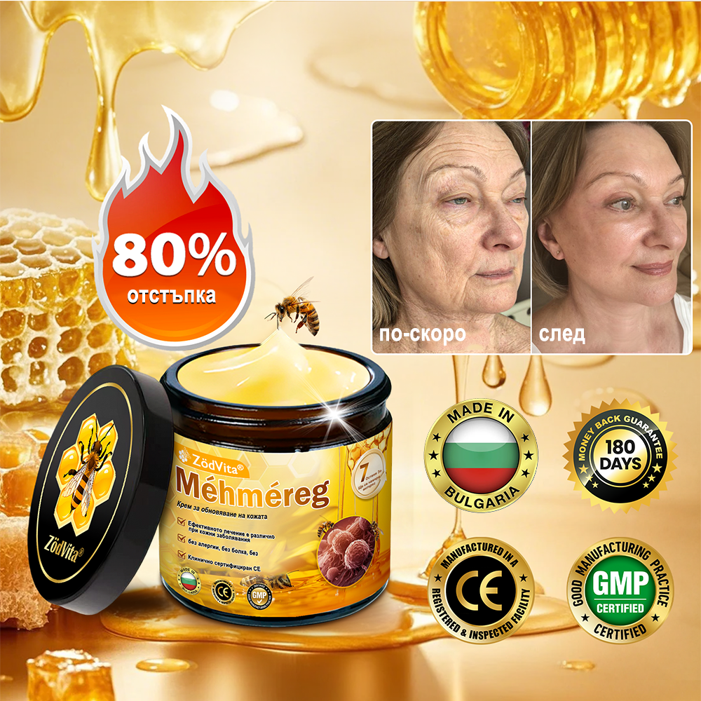 „Нямах представа защо обривът от топлина се разпространи от вътрешната част на бедрата ми към краката — беше ужасно. Опитах какви ли не лекарства и кремове, но нищо не помогна. Един мой приятел, който работи в клиника, ми предложи да изпробвам крем с пчелна отрова, тъй като може да помогне при кожни проблеми. Опитах го и, честно казано, бях впечатлена! Бързо облекчи сърбежа, успокои грубите участъци и зачервяването изчезна много бързо. Изключително ефективен е и много по-достъпен, отколкото очаквах!“